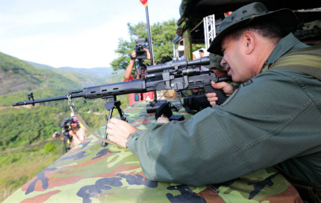 La Fuerza Armada venezolana mostró sus acciones tácticas aéreas y terrestres como parte de los ejercicios cívico-militares que se realizan en el país para hacer frente a la "amenaza imperial" del presidente de EE.UU., Donald Trump, que dijo no descartar la "opción militar" para el país. "Hemos presenciado este ejercicio que nos ha demostrado la articulación, la coordinación, la interoperabilidad de todos los medios aéreos terrestres y la milicia Bolivariana", dijo el ministro de la Defensa, Vladimir Padrino López, al dar inicio a las prácticas militares. En la apertura de este segundo día de prácticas, los militares emplearon sus helicópteros, tanques, explosivos, armamentos y artillería para exhibir así sus "acciones tácticas". "Hemos podido ver una sincronía perfecta que solamente es posible con el grado de instrucción, con el grado de adiestramiento que tiene la Fuerza Armada Nacional Bolivariana (FANB)", dijo Padrino López en transmisión por el canal VTV desde el Centro de Adiestramiento José Laurencio Silva, ubicado en el céntrico estado Cojedes. En ese sentido, felicitó al Comando Estratégico Operacional de la FANB por "la demostración de exactitud, disciplina, coordinación y cooperación". "Hemos visto, por primera vez en este campo de batalla, la infantería de marina de nuestra armada bolivariana. Qué satisfacción me ha dado ver a los tanques VN1, VN16, VN18 de nuestra armada bolivariana, participando con todos los medios blindados del Ejército bolivariano", agregó. Asimismo, Padrino López indicó que durante la práctica también se emplearon los "misiles portátiles Igla S", que según explicó el ministro de Interior, Néstor Reverol, forman un sistema de "seguimiento y detección". Estos ejercicios militares continuarán durante el día en todo el país y en los estados de la costa venezolana los integrantes de la milicia (un cuerpo adscrito a la FANB, integrado por civiles) también se han realizado las prácticas en pequeñas embarcaciones. Según Padrino López, la participación del pueblo de Venezuela en estas prácticas, especialmente "masiva". Este sábado miles de civiles participaron en los ejercicios militares, en un día en el que recibieron entrenamiento para el empleo de las armas. Durante el sábado, se presentó un enfrentamiento entre el Ejército y un grupo violento denominado "Los Rastrojos", en el estado Táchira (oeste), fronterizo con Colombia, que dejó seis personas muertas integrantes de la banda. Esto sucedió cuando el Ejército estaba haciendo actividades de "escudriñamiento, patrullaje y protección" de la frontera como parte de los ejercicios cívico militares.