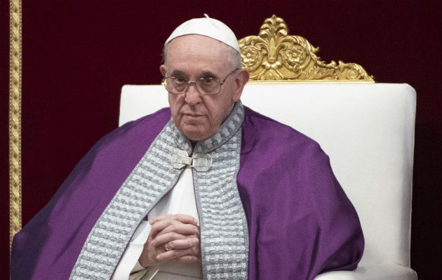 El papa Francisco oficiando una misa penitente en la Basílica de San Pedro en El Vaticano. Foto: EFE.