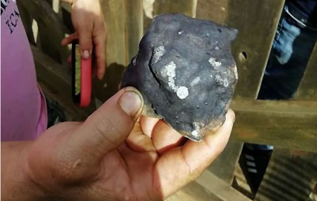 Una persona muestra restos del meteorito caído. Foto: AP.