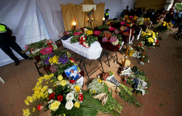 Vista de los ataúdes durante el velatorio de las víctimas. FOTO/EFE