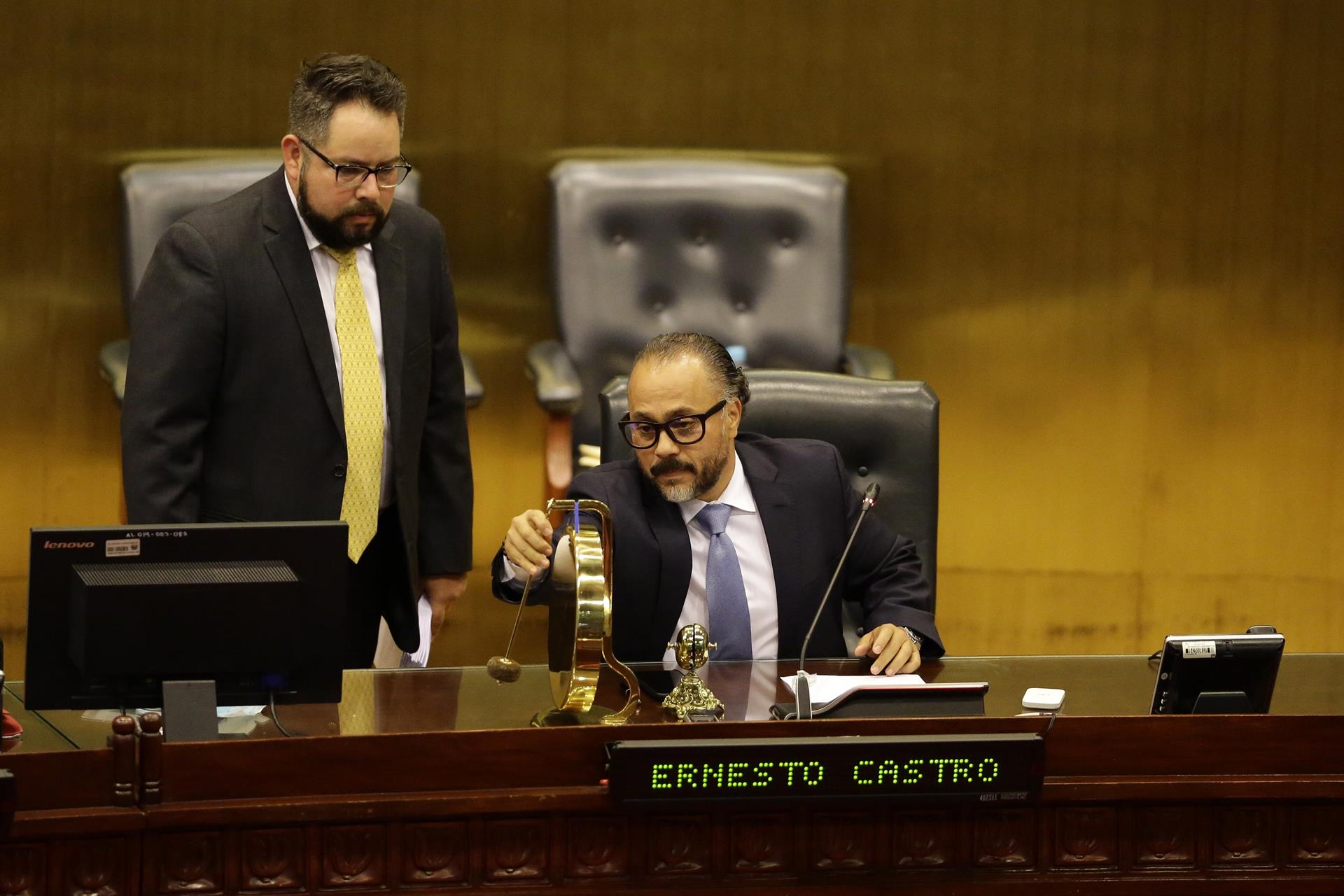 El presidente de la Asamblea Legislativa de El Salvador, Ernesto Castro, durante la primer sesión plenaria de la legislatura 2021-2024. Foto: EFE