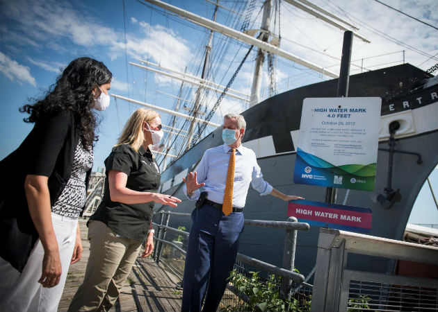 El alcalde de Nueva York, Bill de Blasio (d), verifica los preparativos ante la inminente llegada de Isaías a la Gran Manzana. Fotos: EFE.