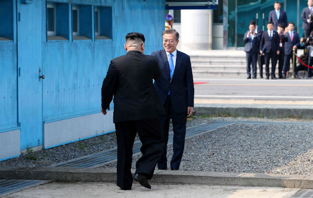 La esperada e histórica cumbre arrancó con una primera imagen para el recuerdo, el instante en que el líder del Norte cruzó a pie la militarizada frontera.