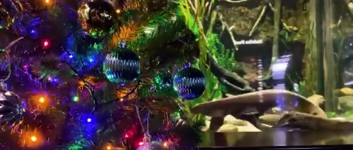 La anguila eléctrica, Miguel, enciende el árbol de Navidad cuando busca comida. Foto/Tomada de twitter: @EelectricMiguel