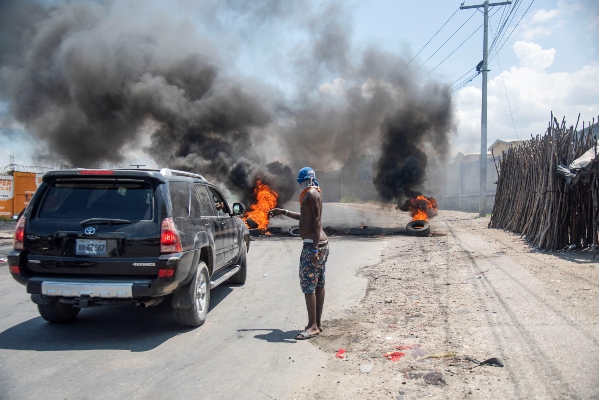 Varias carreteras y avenidas de la zona metropolitana de Puerto Príncipe estaban cortadas, incluyendo la ruta que conduce al aeropuerto, por barricadas o por neumáticos incendiados.