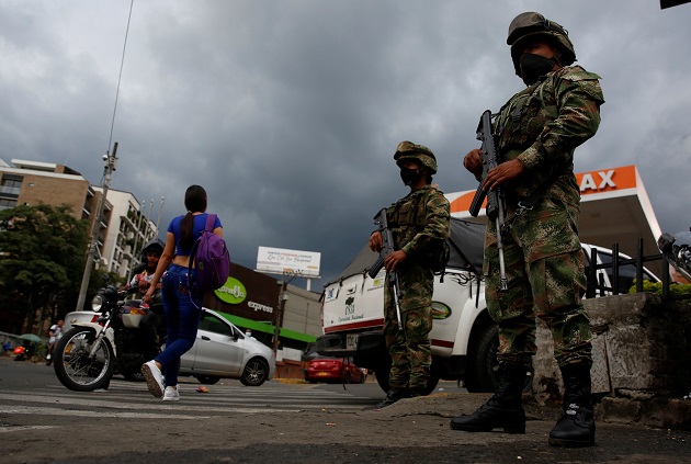 Soldados custodian las calles de Cali,Colombia. Foto: EFE