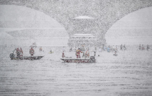 En Garmisch-Partenkirchen, en la frontera con Austria, cayeron solo en la pasada noche unos 30 centímetros de nieve y la intensa nevada se prolongó durante lo que obligó a los organizadores de un gran slalom a cancelar la prueba.