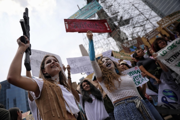 Los jóvenes hicieron presión a lo largo del fin de semana con sendas marchas, para hacerle un llamado a los líderes para que tomen decisiones para proteger el planeta. FOTO/EFE