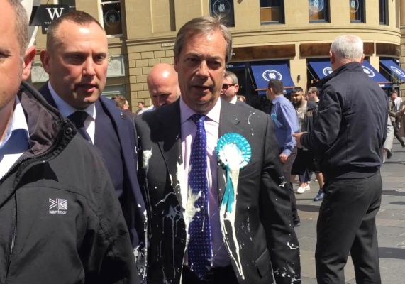 Lo meten preso por tirarle un batido al ultranacionalista británico Nigel Farage