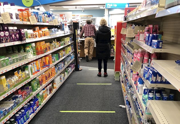 El supermercado local limita el número de personas permitidas en la tienda de acuerdo con los que se encuentren dentro del establecimiento. Y la mayoría de los mercados tienen avisos cada 6 pies (1,5 metros) marcados en el piso, por lo que las personas saben a qué distancia deben mantenerse separadas mientras esperan en la fila.
