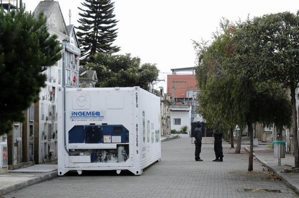 Para evitar que la situación empeore, la Alcaldía también dispuso contenedores refrigerados para depositar cadáveres que luego serán incinerados, algunos de los cuales ya están en operación en los cementerios.FOTO/EFE
