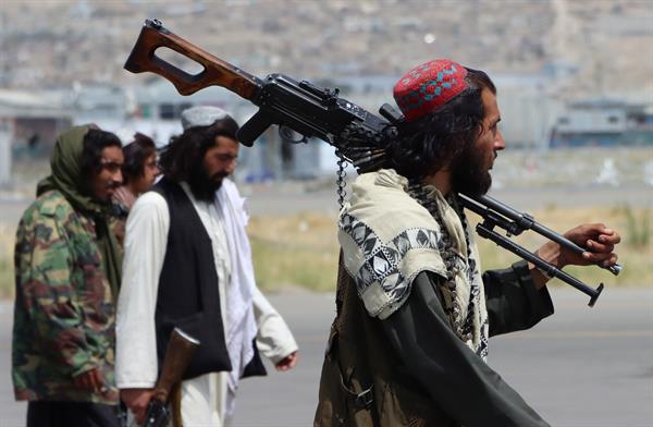 Las fuerzas talibanas aseguran el Aeropuerto Internacional Hamid Karzai, después de la retirada de Estados Unidos, en Kabul, Afganistán. EFE
