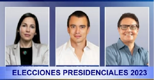 Luisa González, Daniel Noboa y el asesinado candidato Fernando Villavicencio, los más votados en las elecciones de este domingo. Imagen de Internet