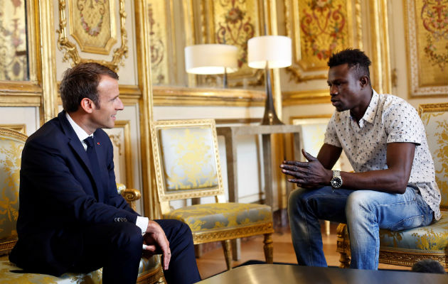El presidente francés Emmanuel Macron se reunió el lunes con un migrante de Mali que se convirtió en un héroe, luego de escalar un edificio de apartamentos para salvar a un niño que colgaba de un balcón.