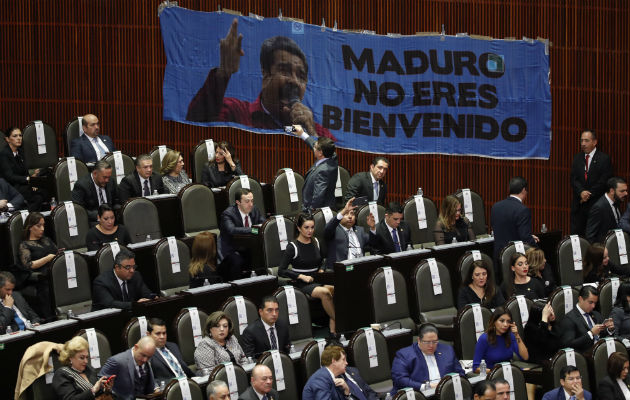 La tensión desencadenada por la invitación al mandatario también se vislumbró dentro del Congreso, donde legisladores del conservador Partido Acción Nacional colgaron una pancarta que rezaba "Maduro, no eres bienvenido".