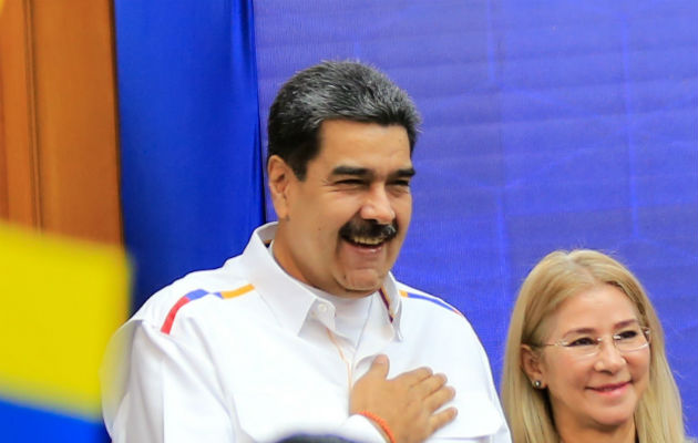 Nicolás Maduro junto a la primera dama, Cilia Flores, durante el inicio de clases universitarias en Caracas. EFE.