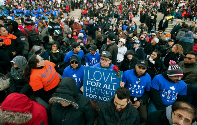 En la plaza Mel Lastman, decenas de miles de personas esperaban la marcha encabezada por Trudeau para iniciar una vigilia, convocada bajo el lema #TorontoStrong (#TorontoFuerte).