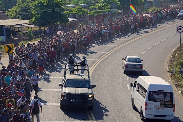 Miles de migrantes, en su mayoría de Honduras, cruzaron irregularmente hoy el río Suchiate, que divide a Guatemala del suroriental estado mexicano de Chiapas, y de manera sorpresiva ante la ausencia de autoridades, conformando un sustancial contingente que llegó a adentrarse varios kilómetros dentro de México.
