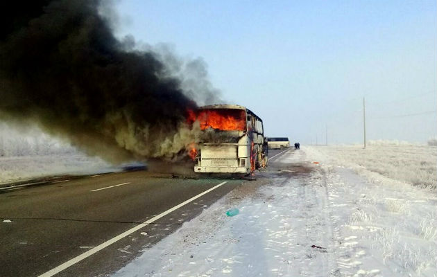 Sólo cinco ocupantes del vehículo, entre ellos los dos conductores, lograron sobrevivir a la tragedia, mientras que el resto murieron en el incendio, dijo a medios locales el portavoz del Comité para Situaciones de Emergencias kazajo, Ruslán Imakúlov.
