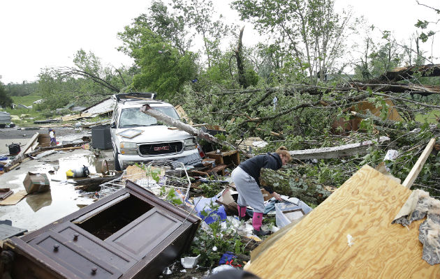 Una mujer busca pertenencias en su vivienda destrozada por un tornado. Foto: AP: