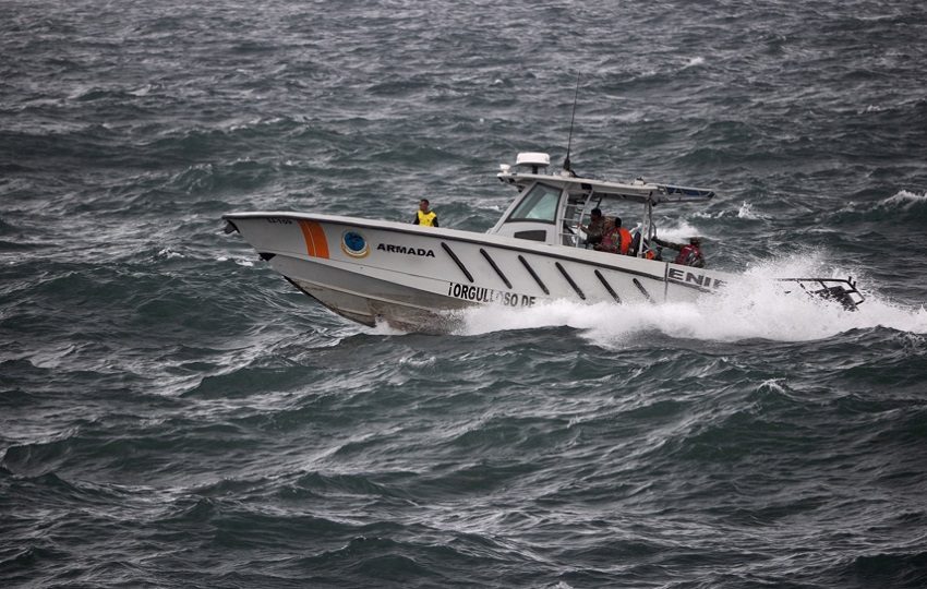 Integrantes de la Armada de República Dominicana realizan labores de búsqueda de un adolescente de 13 años que desapareció en aguas del Caribe, durante el paso del huracán Melissa este sábado, en Santo Domingo (República Dominicana).