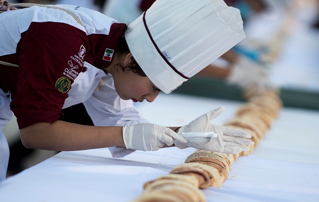 En Saltillo, capital del norteño estado de Coahuila, la universidad recibió el apoyo del municipio para la fabricación de esta filigrana de repostería.