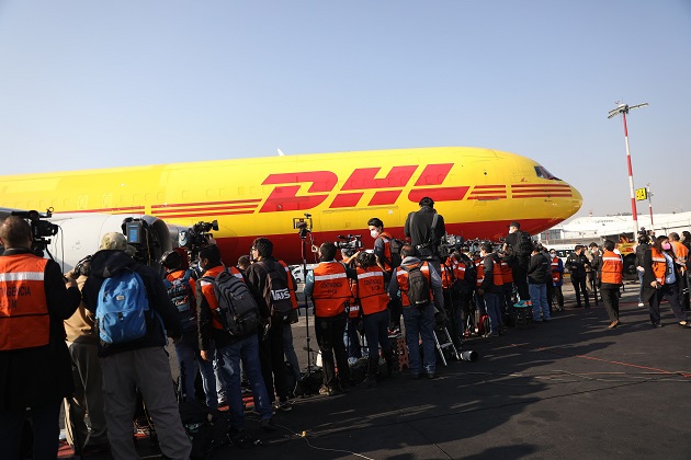 El avión, de la compañía de mensajería DHL, aterrizó con una cantidad de 3.000 dosis en México, uno de los primeros países en recibirlas, donde se empezará a vacunar este mismo jueves a personal médico que atiende a enfermos de coronavirus en la capital.