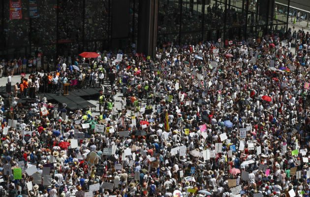 Los neoyorquinos -activistas, religiosos, políticos y sindicatos- unieron su voz a la de miles otros a través del país, en el día nacional de protestas, en el que además levantaron su voz para pedir la reunificación de más de 2.000 niños con sus padres, detenidos en centros de Inmigración y acusados de entrar ilegalmente a este país.
