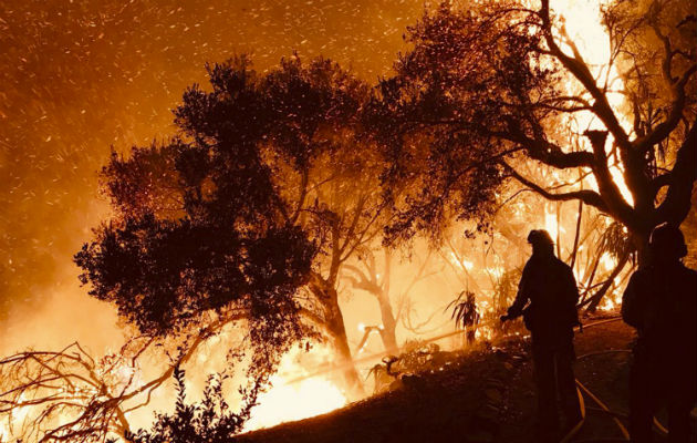 La situación de los residentes de Santa Bárbara, es cada día más caótica debido a los incendios forestales que ha y en el área y que son considerados como los peores de la historia en Estados Unidos. La ceniza caía como nieve y el denso humo dificultaba la respiración después que un incendio forestal del sur de California incrementó su tamaño hasta convertirse en el quinto más grande en la historia del estado, lo que obligó a las celebridades a desalojar un lujoso fraccionamiento ubicado en la ladera de una colina. Decenas de miles de personas han abandonado sus viviendas conforme las llamas arrasan las poblaciones ubicadas al pie de las colinas cerca de Santa Bárbara, a causa de la más reciente de una serie de conflagraciones en la región. Con el denso humo en el aire, incluso los residentes que no están bajo órdenes de evacuación aprovecharon la ocasión para salir de la zona, ante el temor de un nuevo cierre de una importante vía costera por la que se permitió la circulación de manera intermitente la semana pasada. Las autoridades repartieron mascarillas a las personas que se quedaron en Montecito, una exclusiva comunidad ubicada a unos 120 kilómetros al noroeste de Los Ángeles y lugar de residencia de estrellas como Oprah Winfrey, Jeff Bridges y Drew Barrymore. Al actor Rob Lowe se le observó utilizando una mascarilla mientras transmitía en vivo como él y su familia evacuaban su casa entre una densa capa de humo. “Rezo por las personas de mi área”, dijo a sus seguidores en Instagram. “Espero que todos busquen ponerse a salvo como nosotros, y gracias por sus oraciones. Y buena suerte a los bomberos ¡Los necesitamos!”. La conductora de televisión Ellen DeGeneres tuiteó que los vecinos se ayudan para ponerse a salvo, a ellos y sus mascotas. “Les envío mucho amor y gratitud al departamento de bomberos y a la policía. Gracias a todos”, escribió. El fuego ha destruido más de 750 inmuebles, informaron las autoridades. El incendio está parcialmente controlado después de arrasar con casi 930 kilómetros cuadrados de hierba y árboles. Los clientes que llegaban a la pastelería Jeannine’s American Bakery en Montecito tuvieron que sacudirse las cenizas y quedaron asombrados con la densidad del humo, que les permitía apenas unos cuantos metros de visibilidad. “Es increíble la cantidad de ceniza”, dijo el gerente Richard Sanchez. “Todo está blanco. Las calles, los carros, el estacionamiento, todo está cubierto”. Amtrak canceló su servicio por la ciudad de Santa Bárbara, y la iglesia de la ciudad, de casi 200 años de antigüedad, permaneció cerrada debido al humo y las cenizas. Las autoridades emitieron repetidas alertas sobre la calidad insalubre del aire y advirtieron a los habitantes a permanecer en lugares cerrados, evitar las actividades al aire libre y no hacer nada que levante las cenizas. La doctora Helene Gardner, experta en calidad del aire por la Universidad de California, campus Santa Bárbara, vio la caída de cenizas como “nieve fina” desde su casa, después de que la escuela pospusiera los exámenes finales hasta enero. Dijo que a sus estudiantes de ciencias ambientales les pareció irónico que la causa de la demora esté relacionada con su campo de estudio.