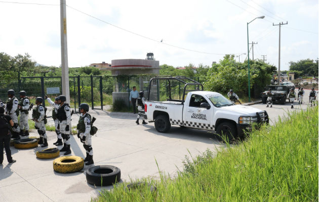 Guardias nacionales vigilan el penal de Atlacholoaya en Xochitepec, estado de Morelos. Foto: EFE.