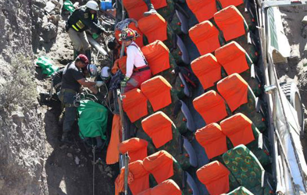 El vehículo de la empresa de transportes Perla del Sur se salió de la pista a la altura del kilómetro 104 de la carretera que va desde la ciudad de Nasca hasta Puquio y cayó por una pendiente de 120 metros.