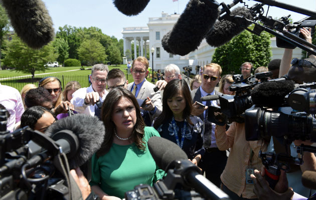 La portavoz de la Casa Blanca, Sarah Huckabee Sanders, casi rompe en llanto al ser preguntada por un niño sobre la violencia armada en las escuelas, mientras celebraba su rueda de prensa diaria.