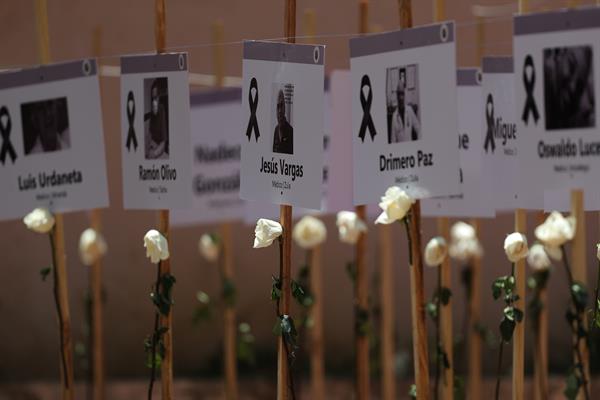 Fotografías de trabajadores de la salud que han muerto por causas relacionadas a la covid-19. Foto: EFE
