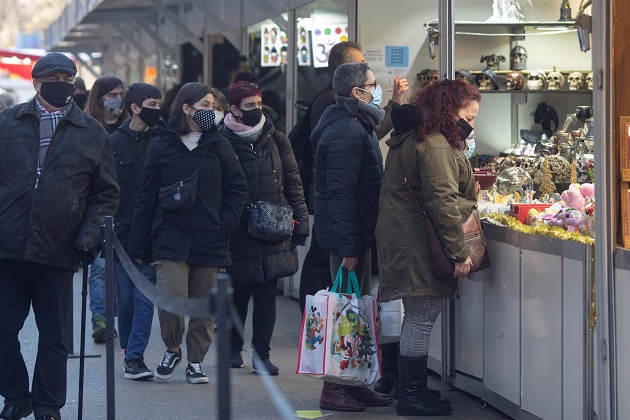 Varias personas recorren hoy la Feria de Reyes en la Gran Vía de Barcelona, en España. Foto: EFE
