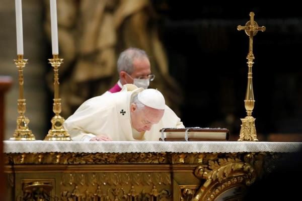 Con sólo pocos fieles debido a las reglas por la emergencia sanitaria, Francisco improvisó una homilía en el que reflexionó sobre tres palabras: abundancia, bendición y don.
