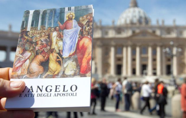 Decenas de miles de fieles que estaban el domingo en la Plaza de San Pedro recibieron regalos del Papa Francisco: copias de tamaño bolsillo de los Evangelios, con la idea de que los tengan a la mano y los lean todos los días.