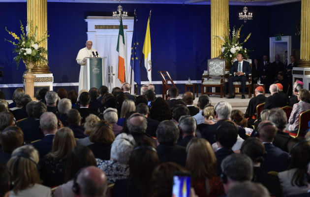 Francisco efectuó esas declaraciones en un discurso a las autoridades en el Castillo de Dublín, después de la intervención del primer ministro irlandés, el democristiano Leo Varadkar, quien le pidió que use su "influencia" y su "posición de mando" para que la Iglesia colabore en el esclarecimiento de todos los casos pendientes y futuros.