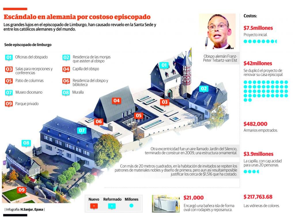 La lujosa y amplia vivienda cuenta, entre otras, con una bañera en el cuarto de baño personal del obispo de $21,000 y un comedor de 63 metros. Se informó, además, que se esperan los resultados de una investigación sobre la construcción de la sede episcopal.