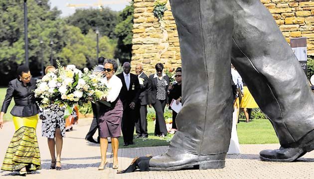 A primera hora de la mañana, la viuda de Mandela, Graca Machel, y compañeros de lucha contra el régimen segregacionista del apartheid como Ahmed Kathrada, realizaron una ofrenda floral a los pies de la estatua dedicada al expresidente ubicada en la pradera frente a los Union Buildings, los edificios del Gobierno en la capital.