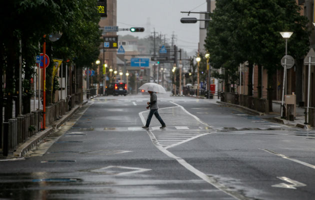 Un hombre camina con un paraguas en Tokio donde hay alerta por el tifón. Foto: EFE.