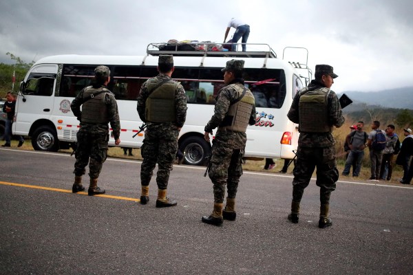Los migrantes fueron colocados a bordo de tres autobuses de color gris y se les pidió que volvieran para registrarse de manera debida en una estación fronteriza y en apego a las reglas que rigen la libertad de tránsito en el acuerdo fronterizo de Centroamérica entre Guatemala, Honduras, El Salvador y Nicaragua.