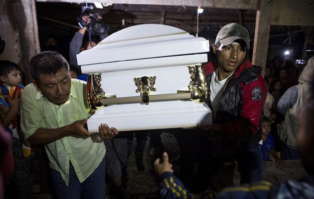 Los vecinos llevan el ataúd que contiene los restos de Jakelin Caal Maquin, de 7 años. FOTO/AP