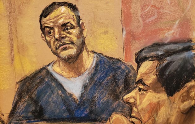 Joaquín "El Chapo" Guzmán escucha el interrogatorio al testigo Pedro Flores. FOTO/EFE