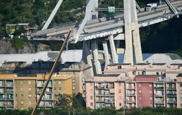 El Cuerpo de Bomberos decidió suspender la entrada de personas y vehículos a "la zona roja" de Génova, debido a los ruidos procedentes de los restos aún en pié del viaducto que se derrumbó el pasado martes y causó 43 muertos.