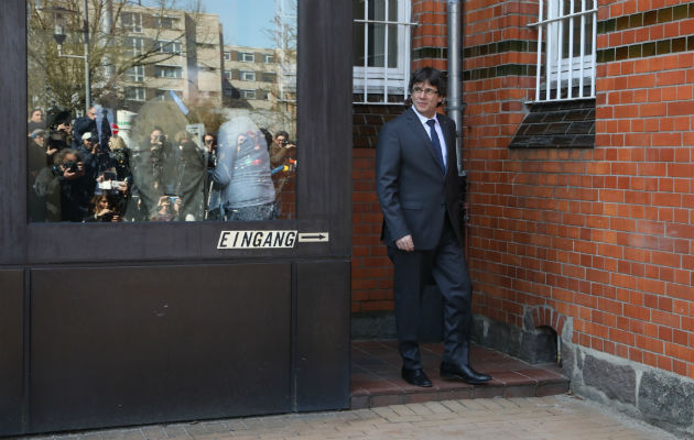El expresidente de la Generalitat de Cataluña, Carles Puigdemont salió en libertad bajo fianza, tras doce días de reclusión en la cárcel alemana de Neumünster (Alemania), y exigió la libertad de sus correligionarios encarcelados en España. "Es una vergüenza para Europa que existan presos políticos", afirmó el líder independentista ante decenas de cámaras de televisión apostadas ante el centro penitenciario, donde aseguró que su lucha no es un asunto "interno" ni un conflicto español, sino que concierne a "todos los ciudadanos europeos". Enfundado en un traje gris oscuro y con aspecto relajado, dedicó unas primeras palabras de agradecimiento, en alemán, a la "solidaridad" recibida en los días en que ha estado en la cárcel, donde ingresó tras ser detenido el 25 de marzo poco después de entrar en Alemania a través de la frontera con Dinamarca. Vea También Fiscalía alemana solicita extradición de Puigdemont por rebelión y malversación A continuación hizo una declaración íntegramente en inglés, que abrió expresando de nuevo su gratitud por el trato recibido en Neumünster, destacando la "profesionalidad" y "respeto" de los funcionarios y también la "ayuda" recibida por los otros internos. Mencionó asimismo las numerosas cartas de solidaridad que dijo haber recibido de países de todo el mundo, desde europeos a Brasil o Japón, para incidir luego en el mensaje político, aunque sin mencionar en ningún momento la palabra independencia. "Exijo la liberación inmediata de todos mis compañeros encarcelados en España", prosiguió, para expresar su fe en una "democracia europea, basada en los principios de separación de poderes, paz y derechos humanos", una forma de democracia que, dijo, "esta en peligro en España". Puigdemont reclamó "más poder para las regiones" y apuntó que "ha llegado el momento del diálogo", algo que "nosotros llevamos reclamando durante años", para recibir solo "respuestas represivas y violentas". A su intervención siguió la de su abogado alemán, Wolfgang Schomburg, quien se felicitó por el hecho de que la Audiencia Territorial del "Land" de Schleswig Holstein haya "definitivamente descartado" y "desde el inicio" la petición de extradición por rebelión, uno de los cargos imputados por el Tribunal Supremo español. "Vamos a estudiar ahora qué ocurre con la de malversación de fondos públicos", añadió el letrado, quien se mostró convencido de que finalmente se rechazará también ese segundo cargo y de que no se procederá a su extradición a España. Había gran expectación mediática por la reaparición de Puigdemont, de quien no se había visto una sola imagen desde su último acto público, en Finlandia, el viernes 23 de marzo, unas horas antes de que se reactivara la euroorden contra él. Dos días después fue detenido tras entrar en territorio alemán, a lo que siguió su inmediato ingreso en esa cárcel y luego la petición de la Fiscalía General de Schleswig-Holstein respaldando en todos los puntos la demanda de extradición cursada por el Supremo español. Finalmente ayer la Audiencia Territorial descartó el cargo de rebelión y decretó su libertad condicional con una fianza de 75.000 euros, que quedó depositada en la Fiscalía del "Land" este mismo viernes. Pasadas las 11.00 horas, la Fiscalía comunicó que había autorizado su puesta en libertad, tras haber recibido el pago y otras garantías requeridas, como que se personará cada semana ante la Policía del lugar donde resida y cuál será su domicilio mientras se resuelva su caso. Para entonces, la explanada ante la cárcel era un hervidero de medios de comunicación, los primeros de los cuales habían llegado al lugar sobre las seis de la madrugada. Puigdemont salió finalmente de la cárcel a las 13.52 (11.52 GMT), acompañado de su abogado alemán, y entre gritos de "Visca Catalunya" -"Viva Cataluña"- coreados por simpatizantes -principalmente catalanes, pero también algunos vecinos de la ciudad- concentrados ante la prisión, algunos de ellos con banderas esteladas independentistas. Inicialmente se había convocado una conferencia de prensa en un pabellón de Neumünster para la tarde, pero fuentes del entorno del expresidente catalán informaron de su cancelación porque, "por motivos legales", Puigdemont se había tenido que trasladar a Berlín.