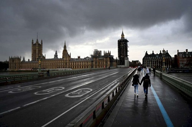 Una pareja pasea por el centro de Londres, la ciudad más afectada por la aparición de una nueva cepa del coronavirus en Reino Unido. Foto: EFE