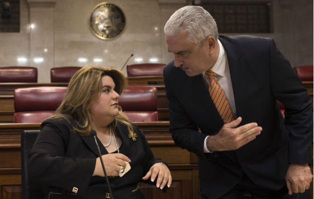 Jenniffer González con el presidente del Senado, Thomas Rivera Schatz. Foto: AP.