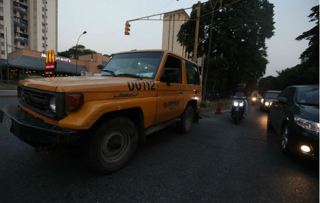 Vehículos transitan por una calle sin alumbrado público por la falta de fluido eléctrico en Caracas (Venezuela). Foto: EFE.