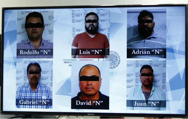 Se observan las fotos de los seis detenidos por el asesinato del periodista Carlos Domínguez.