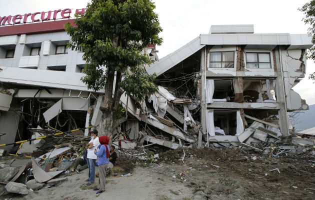 Un hotel muy dañado, después de un terremoto y tsunami que azotaron Palu, Sulawesi Central, Indonesia. AP